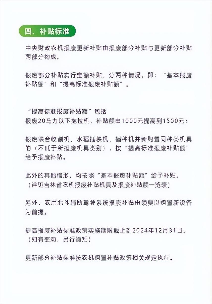 吉林省農業機械報廢更新補貼政策明白卡