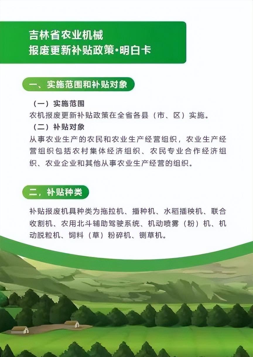 吉林省農(nóng)業(yè)機械報廢更新補貼政策明白卡
