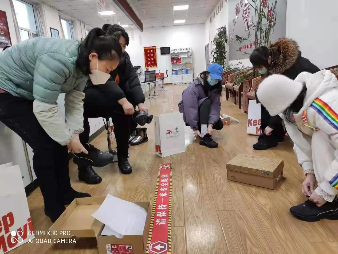 近日,集安市安踏體育用品專賣店老板吳晶濤給團結街道東盛社區工作人員送來了名牌棉鞋,使整天奔忙在防疫一線的社區干部備感溫暖,更使他們增添了做好防疫工作的信心和力量。