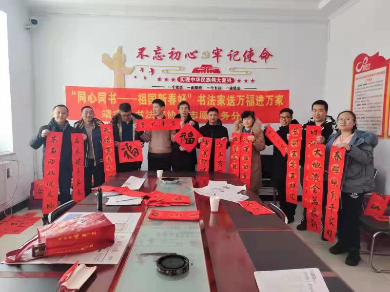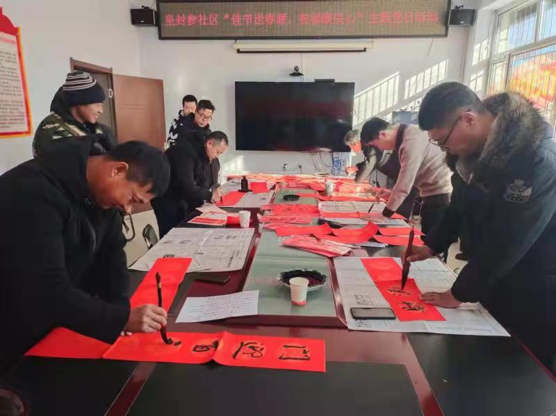 1月13日,靖宇縣花園口鎮皇封參社區一片歡樂喜慶、文明祥和的景象。在2022年新春佳節到來之際,為弘揚中華優秀傳統文化和中國特色志愿服務文化,豐富轄區居民春節期間節日文化生活。靖宇縣書法協會文化志愿者來到皇封參社區,一張張力透紙背的“福”字和一副副對仗工整、寓意吉祥的春聯,寫出了居民對新年的期盼,描繪了群眾對美好生活的向往。