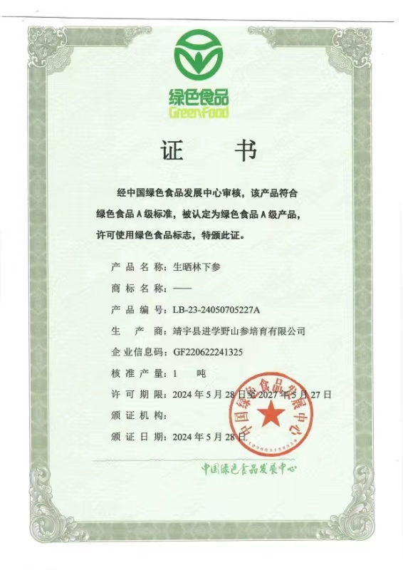 建立質量追溯體系和產品認證。對林下參栽培重點企業和核心生產基地,新上了太陽能紅外線物聯網設備,可以及時獲取企業基地和企業產品相關信息,建立產品質量追溯體系,強化用標企業監管,并且對4戶企業的林下參產品進行了綠色食品認證。 “靖宇林下參”地理標志農產品保護工程項目的有效實施,取得了顯著的經濟效益和社會效益,林下參產業成為帶動農民增收、助力鄉村振興的生態朝陽產業。 通過強化基地基礎設施和林下參種植生產團體標準的制定,企業嚴格按照標準化、規范化要求進行林下參的栽培和生產,基地的標準化程度有了大幅度提升。