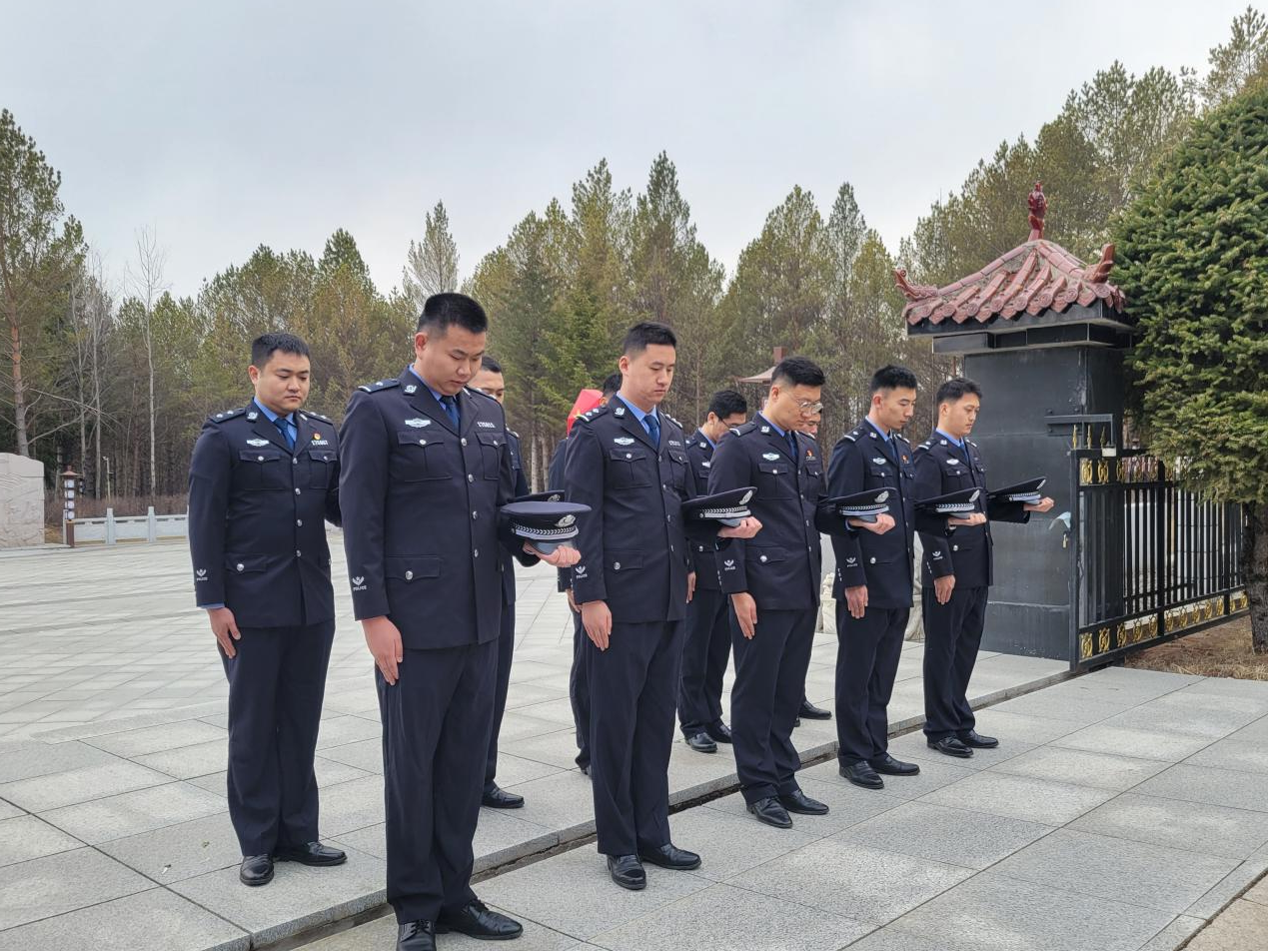 天地英雄氣,千秋尚凜然。在中國(guó)四大傳統(tǒng)節(jié)日,清明節(jié)到來(lái)之際,長(zhǎng)白邊境管理大隊(duì)以“致敬公安英烈、激發(fā)奮進(jìn)力量”為主題,組織開(kāi)展致敬紀(jì)念、學(xué)習(xí)宣傳等一系列形式多樣的紀(jì)念活動(dòng),緬懷英烈功績(jī),傳承紅色基因。 誓言承遺志 警心鑄忠誠(chéng) 清明時(shí)節(jié)的烈士陵園松柏凝翠,豐碑巍峨。在低回的哀樂(lè)聲中,長(zhǎng)白邊境管理大隊(duì)30余名民警在整齊列隊(duì),警容嚴(yán)整、神情肅穆。來(lái)自長(zhǎng)白鎮(zhèn)邊境派出所、馬鹿溝邊境派出所、二十一道溝邊境檢查站的民警代表,依次向革命烈士紀(jì)念碑敬獻(xiàn)黃白菊束,脫帽垂首默哀三分鐘,用最莊重的儀式向長(zhǎng)眠在此的戍邊英烈致以深切追思。 “我志愿加入中國(guó)共產(chǎn)黨,擁護(hù)黨的綱領(lǐng)……”在獵獵飄揚(yáng)的鮮紅黨旗下,全體民警緊握右拳重溫入黨誓詞,鏗鏘誓言激蕩山林。在這座烈士陵園中,長(zhǎng)眠著抗日戰(zhàn)爭(zhēng)、解放戰(zhàn)爭(zhēng)及邊疆建設(shè)中犧牲的英烈,斑駁的碑文銘刻著“戍邊衛(wèi)國(guó)”的血色信仰。 此次“清明祭英烈”主題活動(dòng)通過(guò)擦拭墓碑、描紅碑文、重溫誓詞等儀式,與歷史展開(kāi)跨越時(shí)空的精神對(duì)話。活動(dòng)最后,全體民警環(huán)繞瞻仰烈士名錄墻,在紀(jì)念碑前集體敬禮,讓忠誠(chéng)警魂在紅色洗禮中淬火升華。
