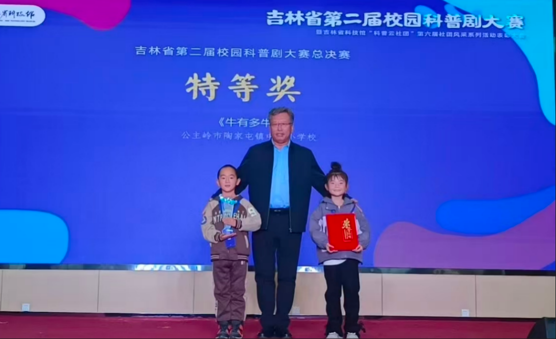 在近期落幕的“吉林省第二屆校園科普劇大賽”中,學(xué)校選送的科普劇《Go“兔”月球》與《牛有多牛》表現(xiàn)優(yōu)異,從層層篩選中脫穎而出,成功入圍總決賽,并最終斬獲佳績(jī)。這一成果不僅為學(xué)校科普教育寫下了濃墨重彩的一筆,也充分展現(xiàn)了學(xué)校在科學(xué)教育方面的扎實(shí)積累與創(chuàng)新實(shí)踐能力。 精心組織 雙劇突圍顯實(shí)力 本屆大賽以“弘揚(yáng)科學(xué)精神,探索科技賦能”為主題,自2025年初啟動(dòng)以來(lái),歷經(jīng)地區(qū)選拔與省賽半決賽,競(jìng)爭(zhēng)異常激烈。陶家屯鎮(zhèn)中心小學(xué)高度重視青少年科學(xué)素養(yǎng)的培育工作,積極響應(yīng)賽事號(hào)召,組織師生投入科普劇的創(chuàng)作與排練。