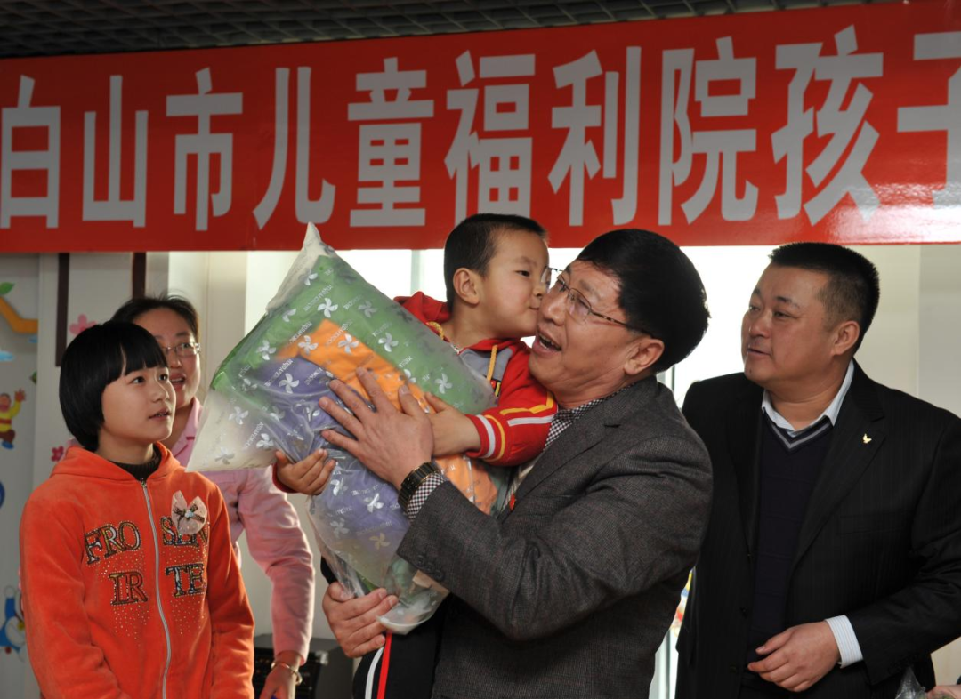 吉林省酒文化博物館內不同年份的茅臺酒 2013年,寧鳳蓮憑借藏酒67大類、5759個品種創造吉尼斯“最多數量的白酒收藏”世界紀錄。次年,吉林省酒文化博物館更是榮升為國家4A級旅游景區,成為了文化旅游的新名片。正是得益于寧鳳蓮的不懈努力,迄今為止,吉林省酒文化博物館已吸引超過30萬名訪客前來探訪。 赤誠奉獻 真情回饋社會 “潛心經營、效益為先、回報社會”是白山方大集團的發展宗旨,在事業蒸蒸日上的同時,寧鳳蓮始終不忘回饋社會。他積極參與各項公益活動,用實際行動踐行企業的社會責任。福利院是寧鳳蓮長年堅持走訪和慰問的地方,在每年的“端午節”“中秋節”和“春節”等中國傳統節日來臨之際,他都會帶著白山方大的員工們來到老人、孩子們中間,為他們送祝福、送歡樂,送去家鄉人的一份愛心。